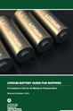 The Lithium Battery Guide for Shippers is PHMSA's premier compliance-aid resource on lithium battery shipping. Designed to assist shippers with safely packaging lithium cells and batteries for transport by all modes, it directs readers to scenario-based shipping guides that outline the requirements to ship packages of lithium cells and batteries in various configurations. Each distinct shipping guide in this document refers to the regulatory requirements for a specific lithium cell/battery type, configuration, or size. Spanish version coming soon!